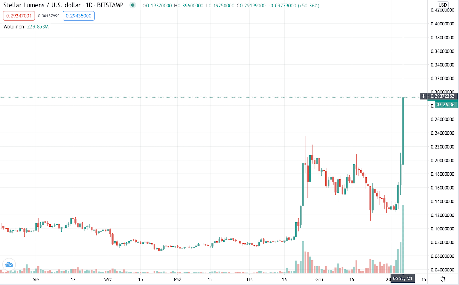 Вчера, 6 января, курс XLM превысил $0,3, достигнув максимального значения с ноября 2018 года.
