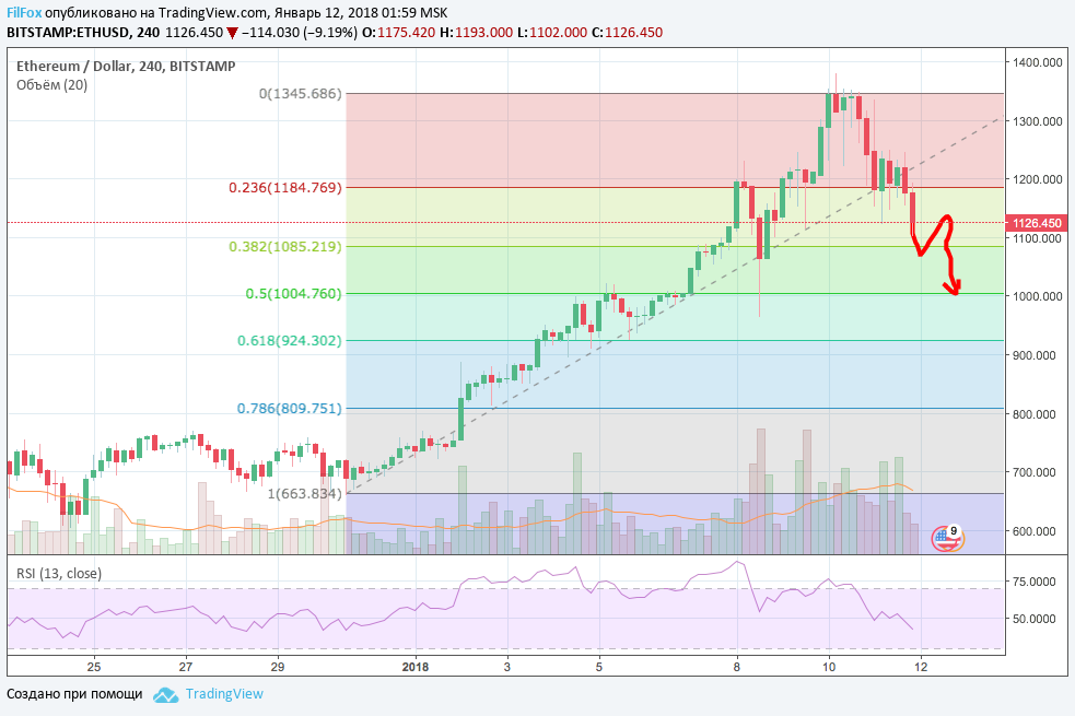 Давайте посмотрим на график цены Эфира и попробуем проанализировать, что следует нам ожидать от цены 12 января.
