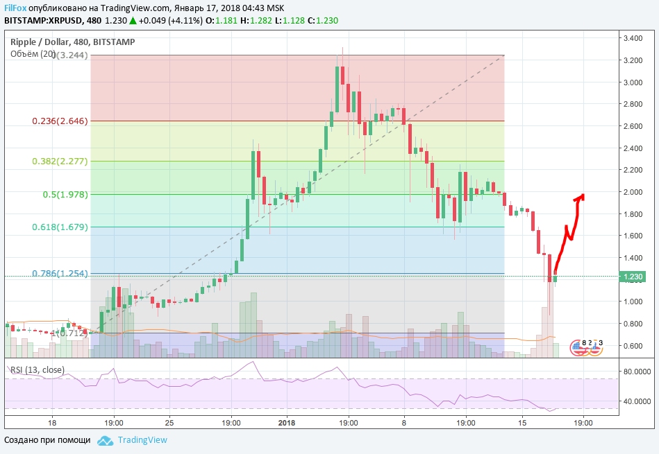 Анализируя график цены по Ripple, можно сказать, что локальный минимум на отметке 87 центов за XRP уже пройден и цена постепенно начнёт восстанавливаться к своему равновесному состоянию, которые было до «информационной атаки». По моей оценке это зона в районе двух долларов США.