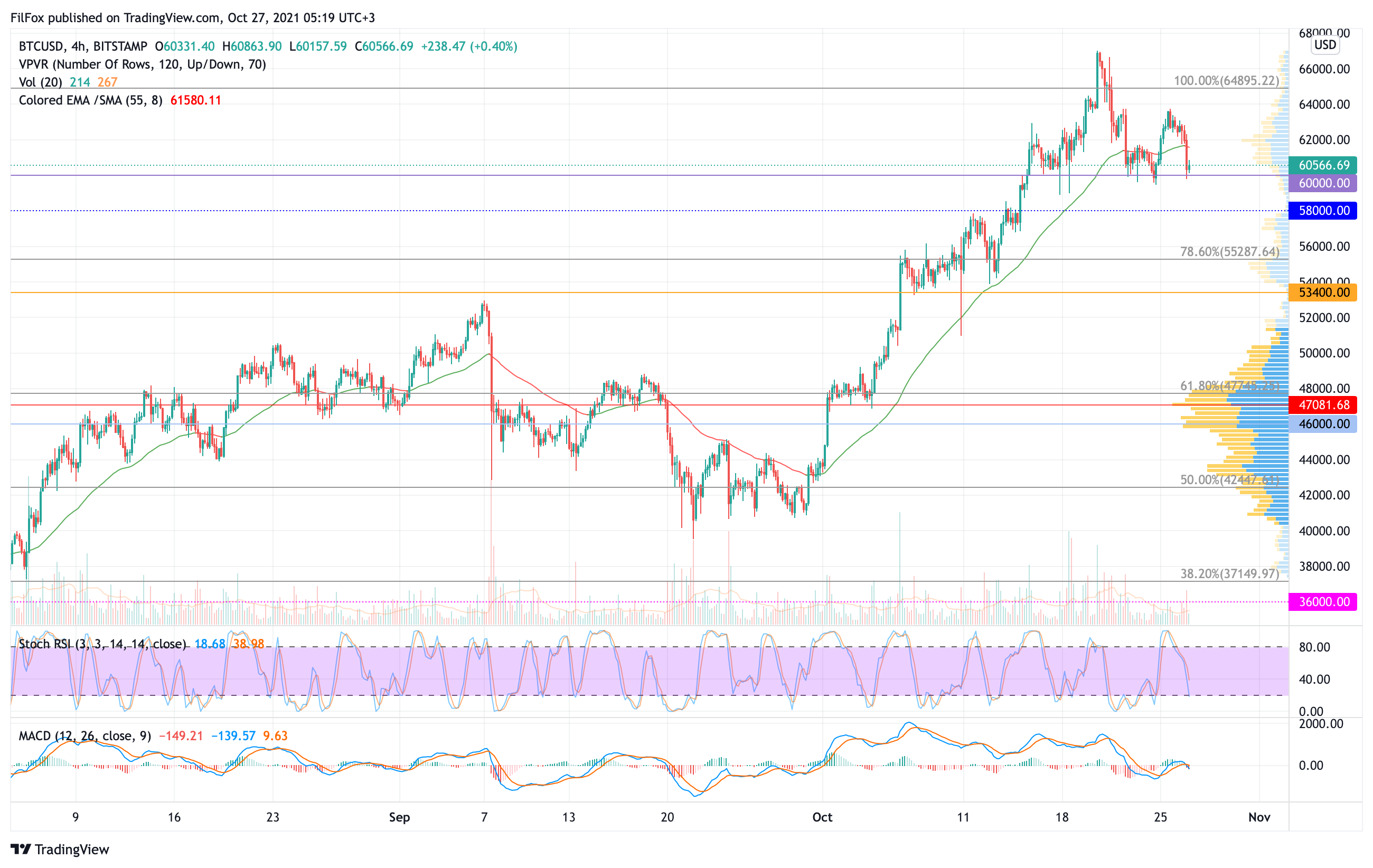 Сегодня ночью медведи вернули цену Bitcoin к поддержке 60000.00 USD.