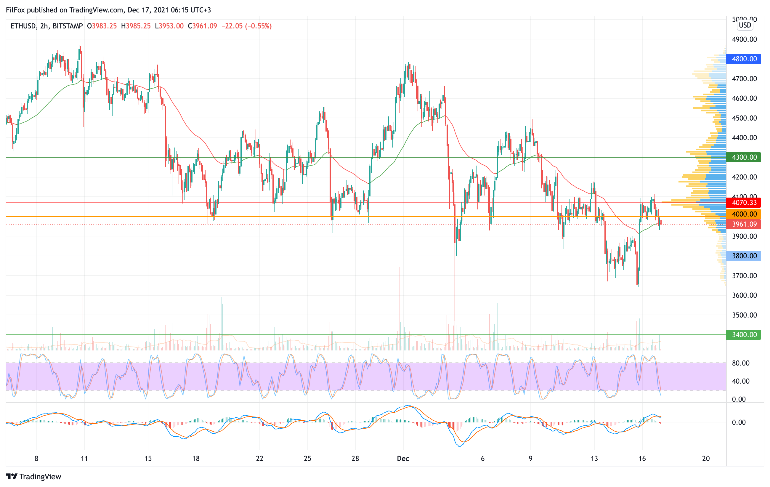 Вчера в первой половине дня цена Ethereum установила дневной максимум в районе отметки 4117.00 USD. Слабый рост не был поддержан крупными объёмами, и ещё до конца дня пара вернулась к психологической поддержке 4000.00 USD.